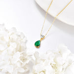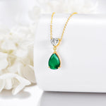 14K Gold 0.5Ct Heart Moissanite & 2Ct Pear Emerald Pendant Necklace