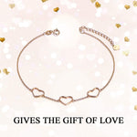 This women's gold bracelet is crafted from 58.5% pure 14k real gold, not just a covering, ensuring high quality and nickel-free materials. The design features three heart-shaped pendants on a dainty gold chain, creating a...