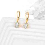 14K Gold Flower Shape CZ Dangle Drop Earrings