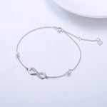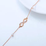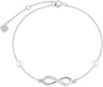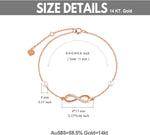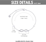 This women's gold ankle bracelet is crafted from high-quality 14k real gold, containing 58.5% pure gold, not just gold-plated. The nickel-free design features a delicate infinity shape adorned with white diamonds and freshwater cultured pearls....