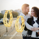 These elegant gold hoop earrings for women feature intricate Viking Celtic knot artwork symbolizing eternal love friendship faith and family The timeless design has no beginning or end reflecting infinite bonds Crafted from genuine 14k...