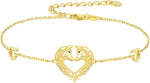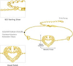 Gold 925 Sterling Silver Heart-Shaped Horses Adjustable Bracelet
