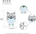 Sterling Silver Heart-Shaped Opal Cat Stud Earrings