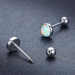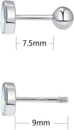 These cute and dainty screw-back stud earrings feature a unique white fire opal inlay for a delicate and elegant look. Crafted from 925 sterling silver and opal, they are nickel-free, lead-free, cadmium-free, and hypoallergenic, making them perfect for sensitive ears.