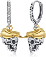 Sterling Silver Skull with Hat Huggie Hoop Earrings